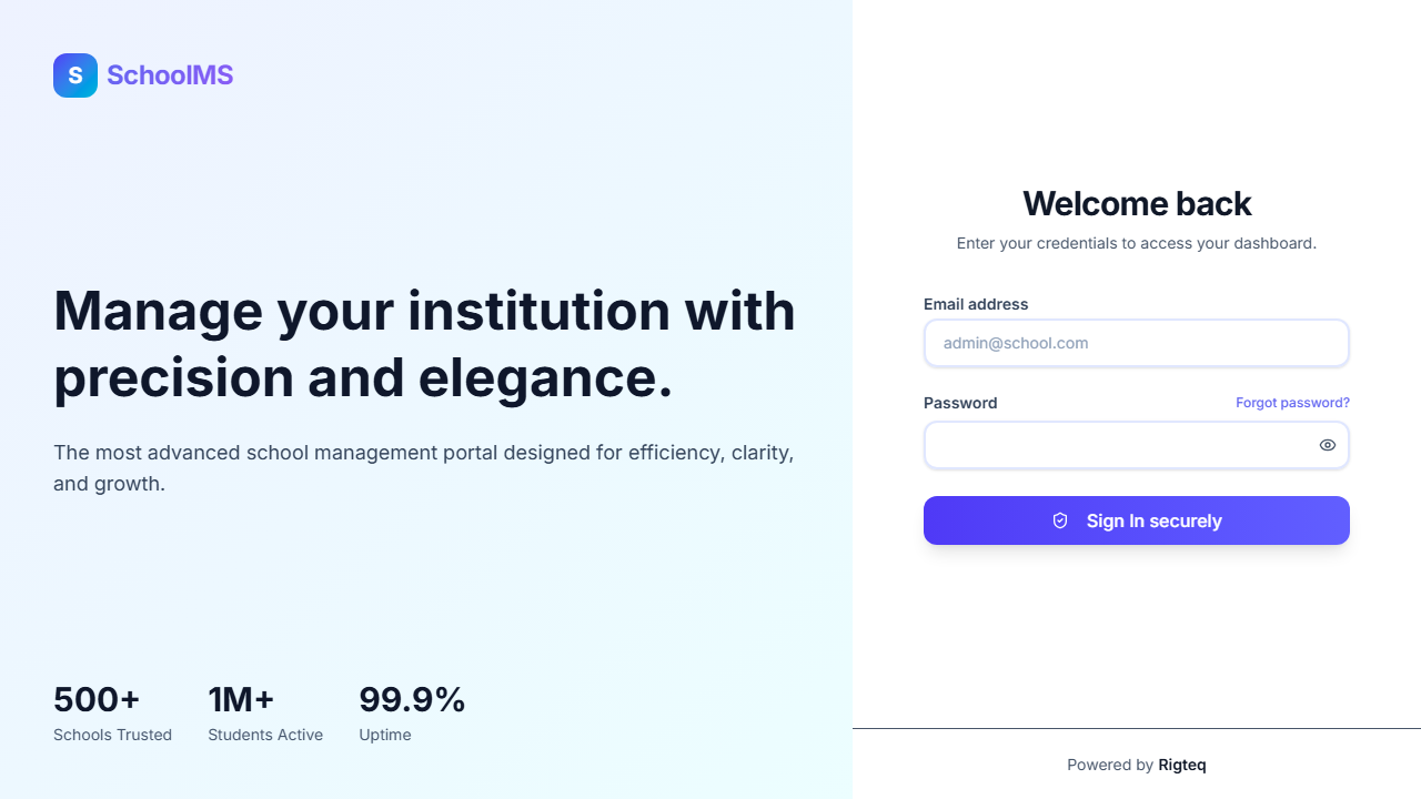 Ready-to-deploy administrative suite for scaling academic institutions. Manages everything from admissions to cloud-based grading.